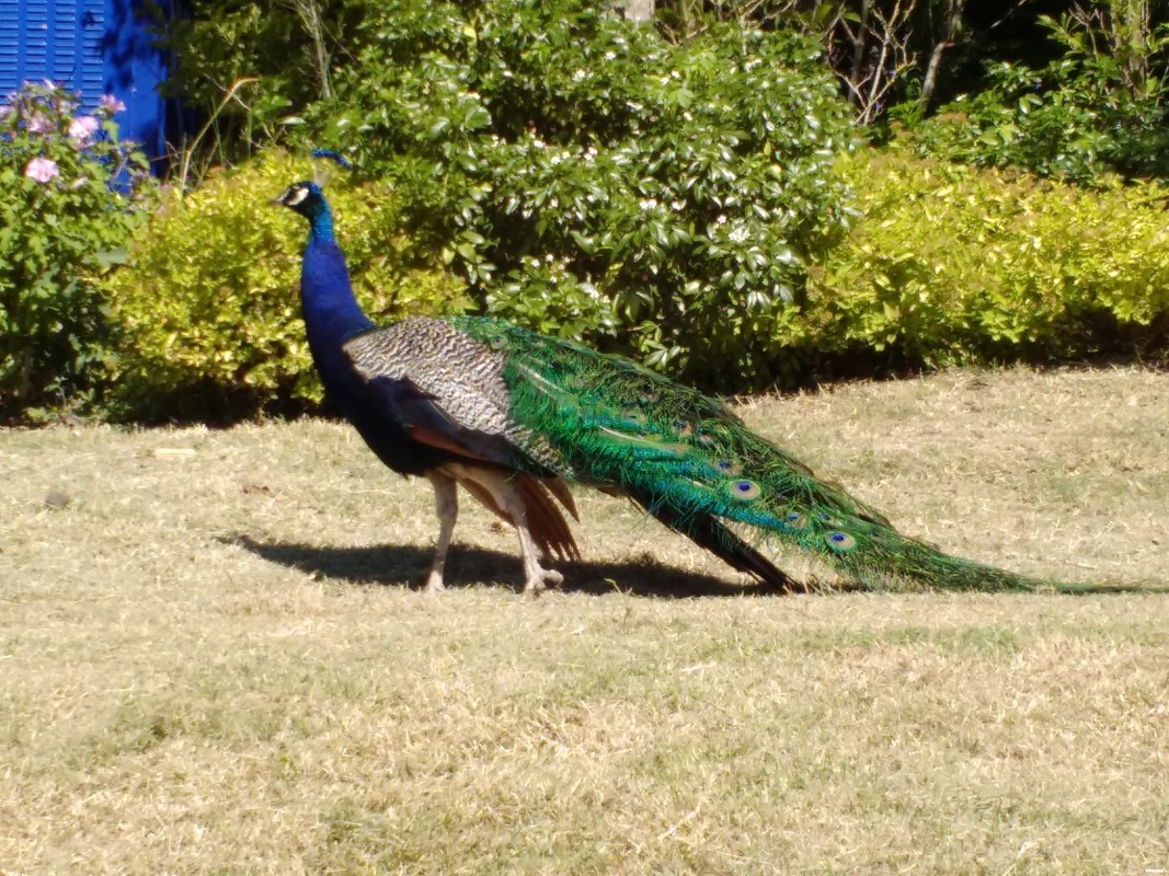 Trois paons se pavanent le long des grilles de leur enclos. Ils ignorent superbement les « Léon , Léon !! » que leur crient les gamins massés devant eux. Faire la roue ? Ils ont déjà donné plusieurs fois dans la journée, ils sont fatigués. Géraldine ouvre de grands yeux, fascinée par leurs couleurs chatoyantes, l’aigrette qui bouge sur leur tête. Sa petite main potelée passée entre les barreaux, elle aimerait bien toucher un de ces magnifiques volatiles qui la changent c’est sûr, des vieilles poules acariâtres de Pépé François.