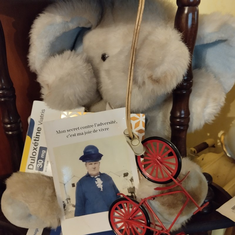 Sa vie psychique s’est simplifiée, adieu le petit vélo dans la tête… Avant elle était triste, irritée, douloureuse, en colère, il fallait cocher… ça n’allait pas parcequ’elle… Parceque untel ou untelle… Parce que le temps… Parceque la vie…