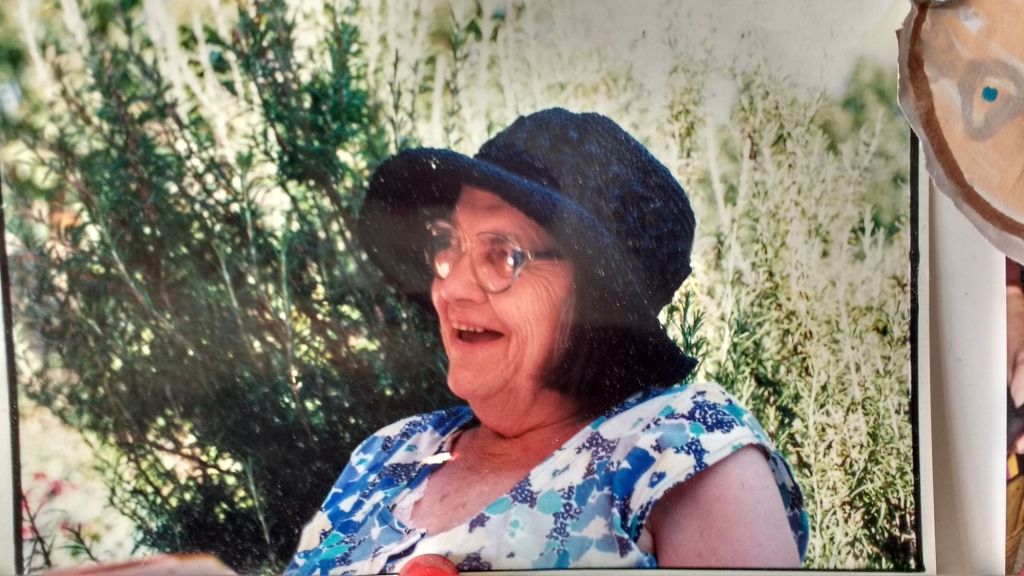 Un chemin des arbres un chien et toutes les mères du monde qui, ponctuent de leurs cannes, les histoires du passé. Transmission familiale.